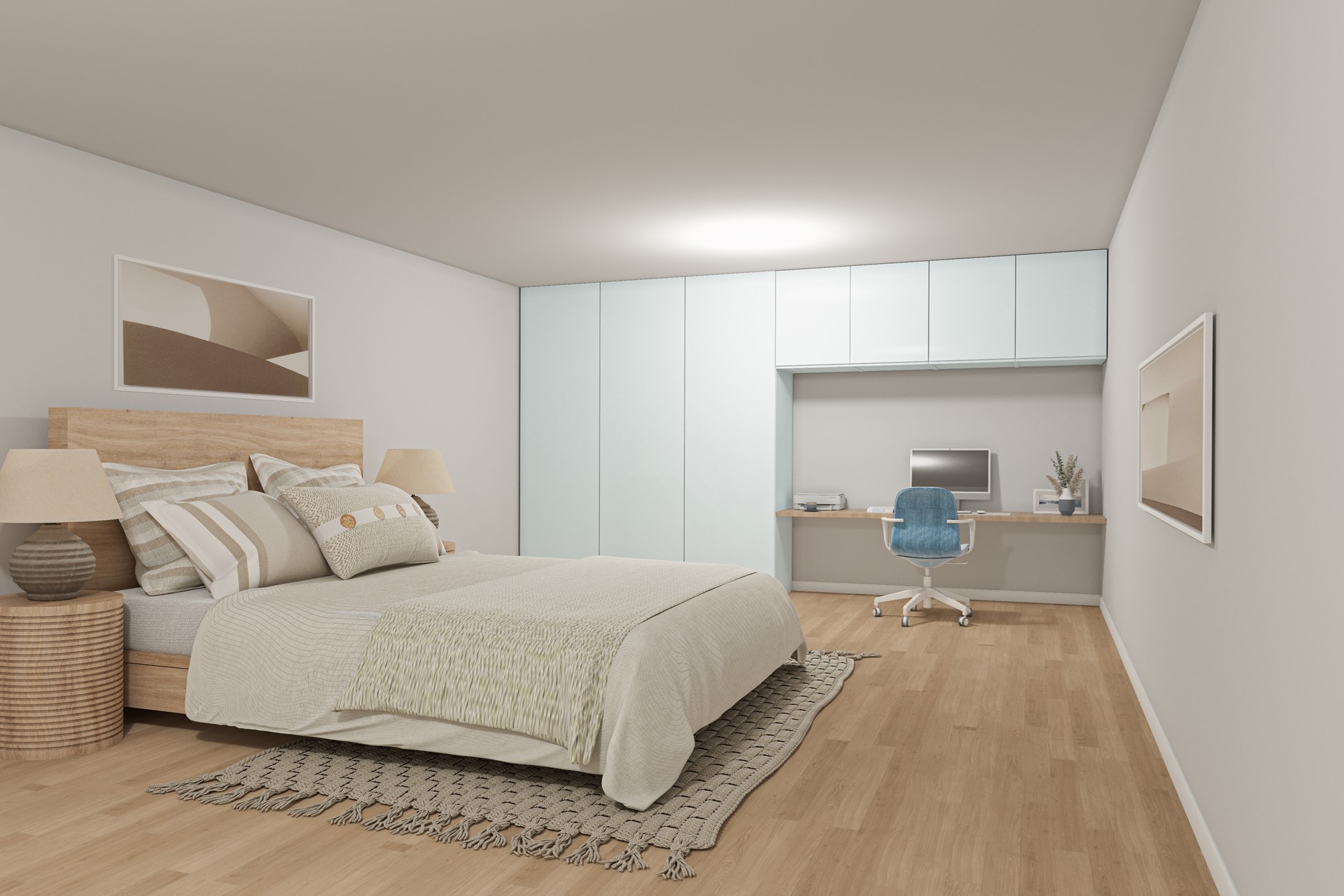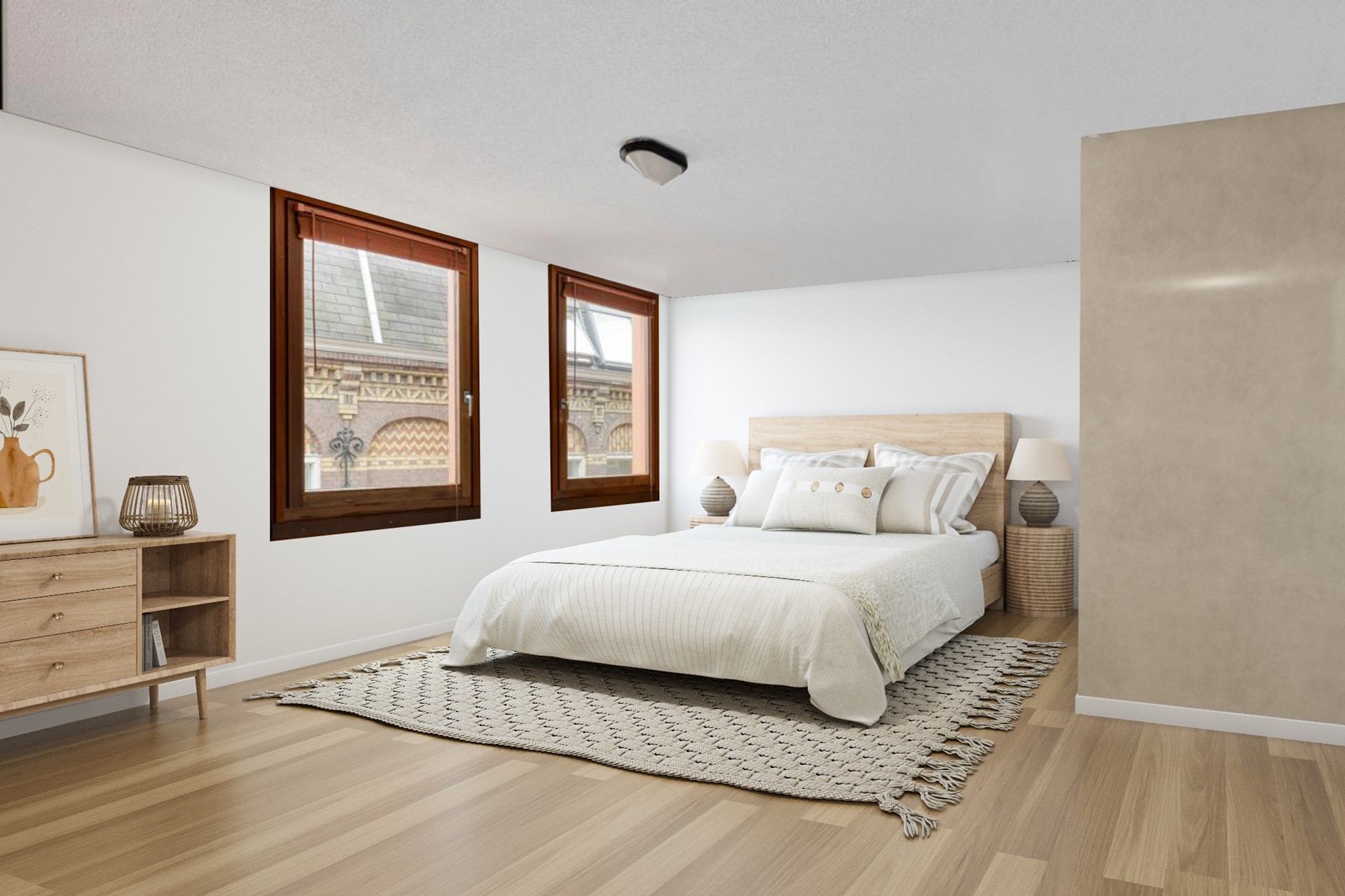 Wie verder kijkt, ziet hier een unieke kans om de woning naar een hoger niveau te tillen. In de alternatieve indeling wordt de ruimte optimaal benut en ontstaat er een luxe en eigentijds geheel. De riante woonkamer (65m2) vloeit naadloos over in een royale woonkeuken met kookeiland, met aangrenzend het balkon. De master bedroom wordt een volwaardige en lichte ruimte, voorzien van een luxe ensuite badkamer en een ruime inloopkast – een zeldzaam en comfortabel geheel in hartje Amsterdam. Daarnaast ontstaat een tweede ruime slaapkamer met een riante werkhoek, ideaal voor thuiswerken. Ook de badkamer krijgt een upgrade: de oorspronkelijke badkamer wordt aanzienlijk vergroot en ingericht met een ligbad, inloopdouche, wastafelmeubel, een tweede toilet én een praktische wasruimte.